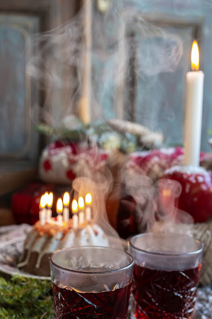 Pakkaslumi on verhonnut kuistia valkoiseksi. Tunnelma on heti katossa. Myrsky on ravistellut lähimetsän puista kasoittain käpyjä lenkkipolun varrelle. Jokaiselta reissulta tulee noukittua tuliaisia kotiin. En ole lainkaan varma, mitä niistä syntyy - ehkä kransseja tai sitten pidän niitä vain kulhoissa koristeena. Kuisti alkaa kyllä miehen mielestä jo näyttää metsälle - en yhtään osaa sanoa, miksi ;)